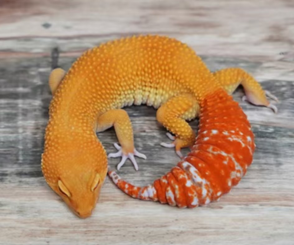 命名“Sun Glow”意指如阳光般明亮且无杂斑,是“视觉最干净”的豹纹守宫之一。后来衍生出“Super Sun Glow(超级阳光)”、“Sun Glow Carrot Tail”等增强版,极具繁育价值与收藏意义。